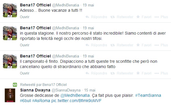 وربطت بعض وسائل الإعلام بين تغريدة بنعطية والحديث عن قرب توقيعه لأحد الفرق الكبرى في أوروبا، ورأت في تغريداته رسالة وداع لجماهير فريق روما الذي قدم موسما استثنائيا، حيث تمكن من احتلال الصف الثاني في الكالشيو خلف المتصدر يوفونتيس.