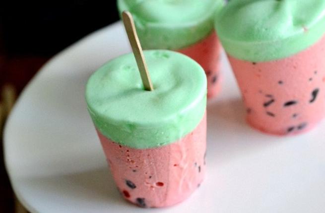 اتركي المزيج يرتاح لمدة ثلاث دقائق ثم وزعيها على كؤوس أدخليها إلى المجمد لمدة 30 دقيقة. اغرسي الأعواد الخشبية لمدة 4 ساعات.