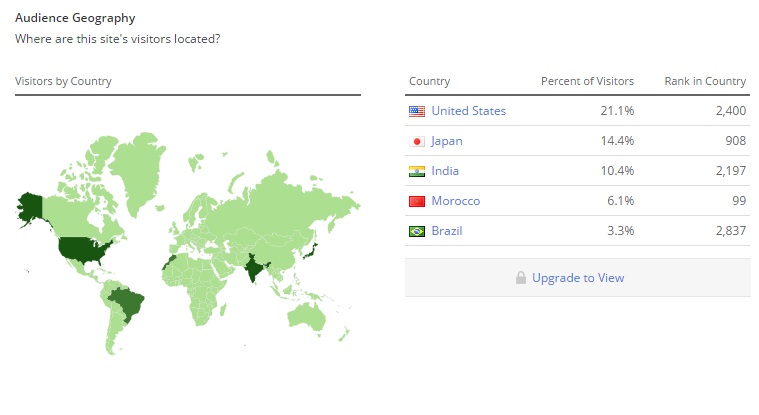 ويحتل المغرب المرتبة الرابعة بنسبة 6,1 في المائة، في قائمة الدول الأكثر زيارة للموقع بحسب موقع ألكسا المتخصص في إحصائيات المواقع، فيما تحتل الولايات المتحدة الأمريكية الصدارة بنسبة 21,1 في المائة، متبوعة باليابان بنسبة، 14,4 في المائة، فالهند بنسبة 10,4 في المائة.