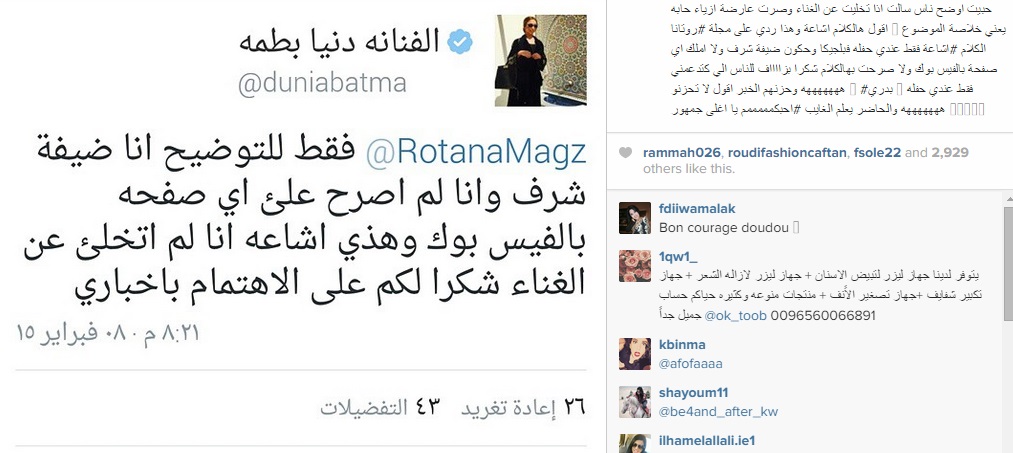 وسبق للعديد من المواقع الاخبارية أن قالت إن دنيا باطمة قررت اقتحام عالم عروض الأزياء، مؤخرا، وذلك من خلال مشاركتها في إحدى التظاهرات الكبرى الخاصة بالقفطان المغربي التي ستقام في العاصمة البلجيكية بروكسيل يوم 29 مارس المقبل.